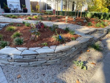 There are several choices of materials. For taller walls, especially those retaining hillsides, a block system usually works best. For decorative walls, shorter than 24", stucco or decorative stone veneer would be other options.